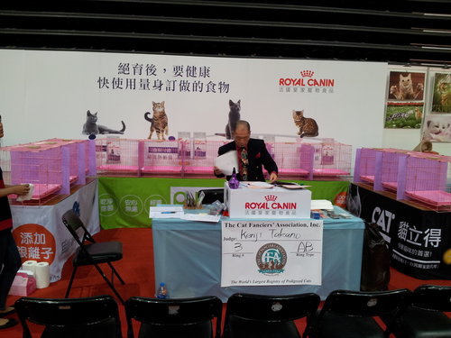 這次的貓展因有皇家大力贊助,審查台的背景都布置得很漂亮