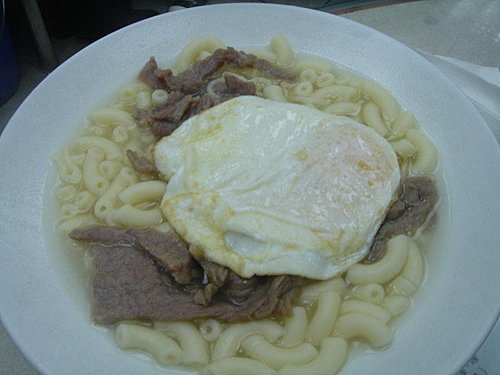 我老公點了一個牛肉雞蛋通粉,味道很淡不太可口