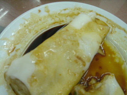 而我想吃的蝦仁腸粉一直沒有,只好拿牛肉腸粉