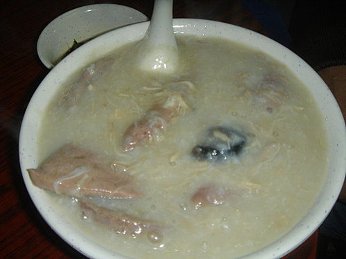 我老公點的豬潤皮蛋瘦肉粥,豬潤就是豬肝,他說豬潤很好吃